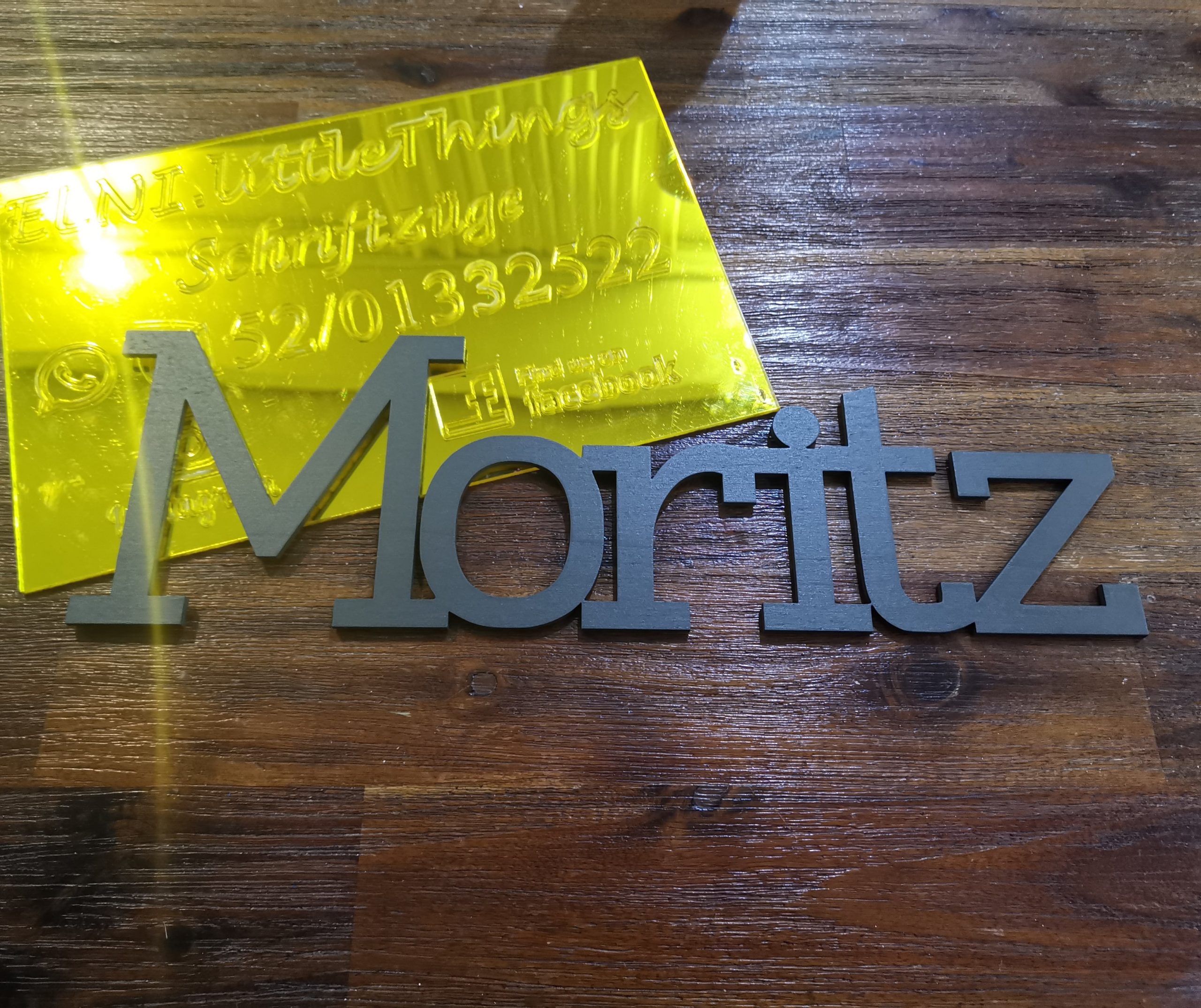 – 40cm x 0,4cm (Breite x Tiefe) Höhe ändert sich je nach Schriftart und Buchstabenanzahl.